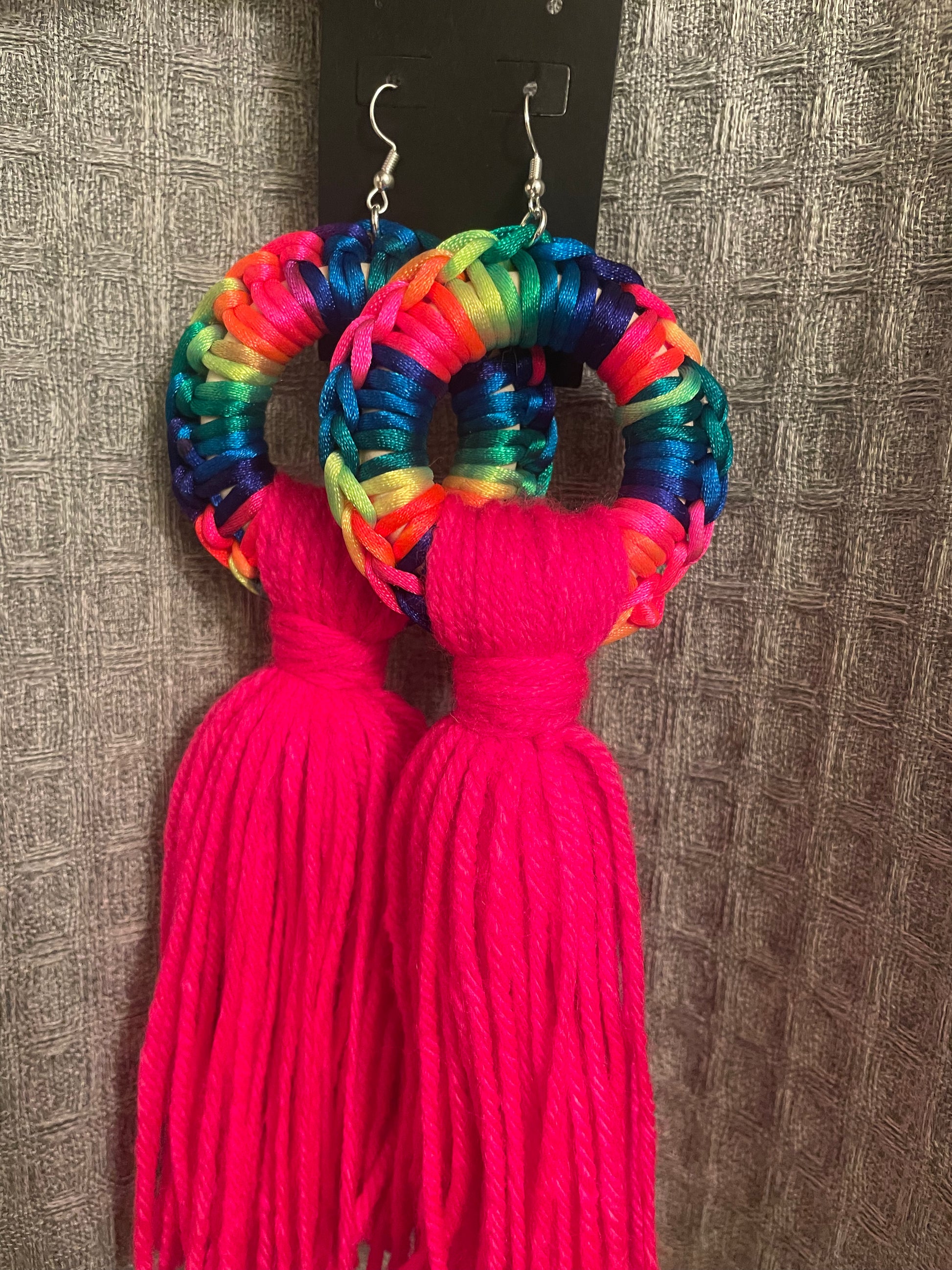 Rainbow tassel fringe earrings